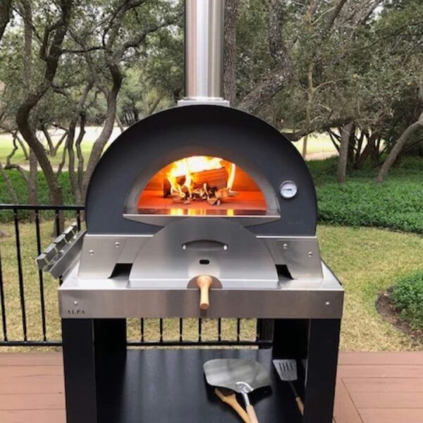 The oven has a refractory cooking surface with stainless steel dome. It quickly reaches operating temperature, and the progress of baking can be checked at a glance.